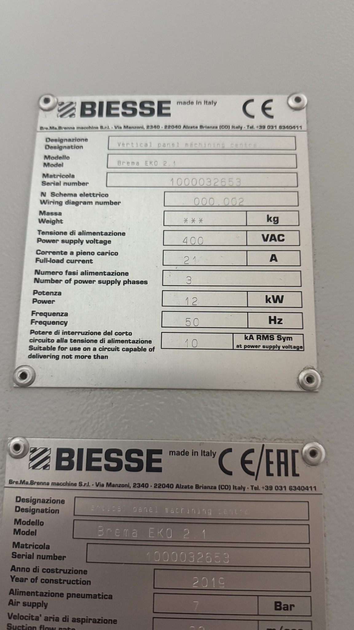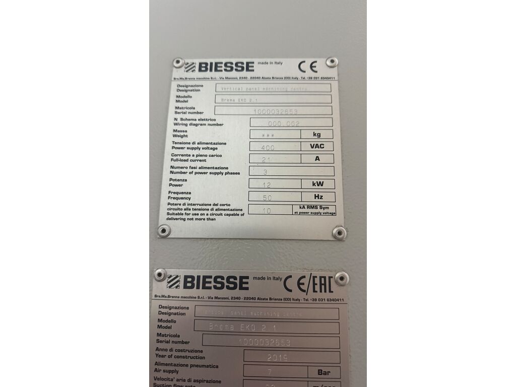 - Istoricul poate fi verificat cu reprezentanții Biesse România. (Accesoria Group)