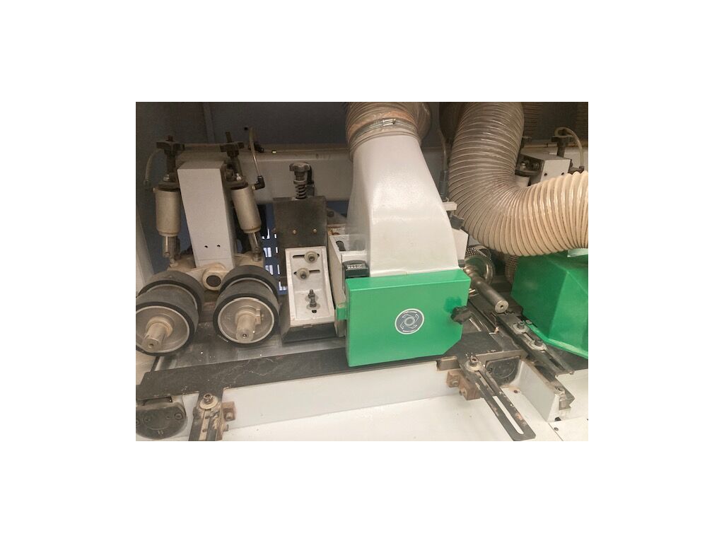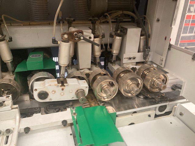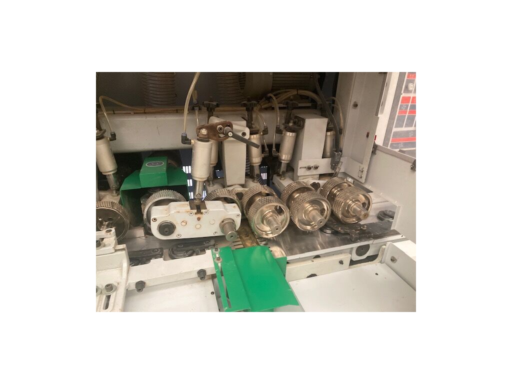 ▪ Valturile de avans metalice canelate la intrare si cauciucate la iesire sunt actionate pe verticala cu pistoane pneumatice, cu doua zone de lucru (cu regulatoare separate)